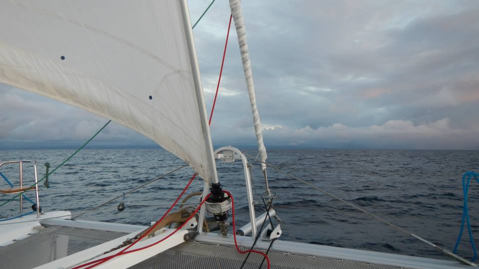 After a beautiful spinnaker run most of the day yesterday, we took 20 kts on the beam most of the night. Exodus has gotten a little lively, nothing crazy, but more motion than we’ve been used to in awhile. I have to hold on to move around the boat this morning. At this point, I am desperately missing land. We left New Zealand over 2 weeks ago, and aside from about 20 minutes of standing on a dry patch at low tide in Minerva I’ve just been bobbing about on Exodus. I love Exodus and all, I just really need to be on land. We still have 2 more days until we get to Savusavu, and the winds are supposed to die, so maybe my urgent need for land will subside a bit. We had VHF contact yesterday afternoon with a boat we met at Minerva, but other than that it’s been just us out here. Kind of strange after the passage from New Zealand where we had at least one boat, usually more, within VHF range almost the whole.