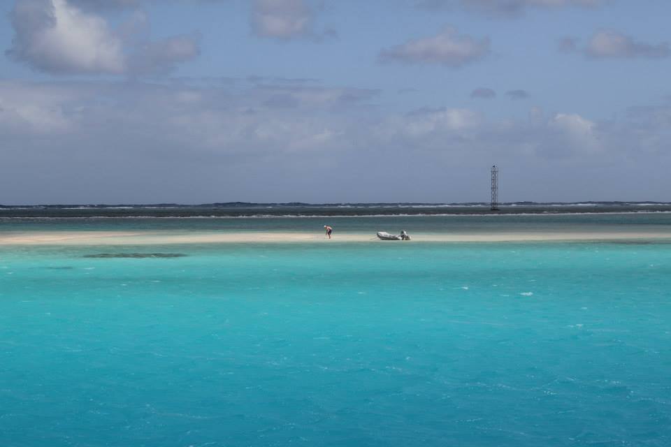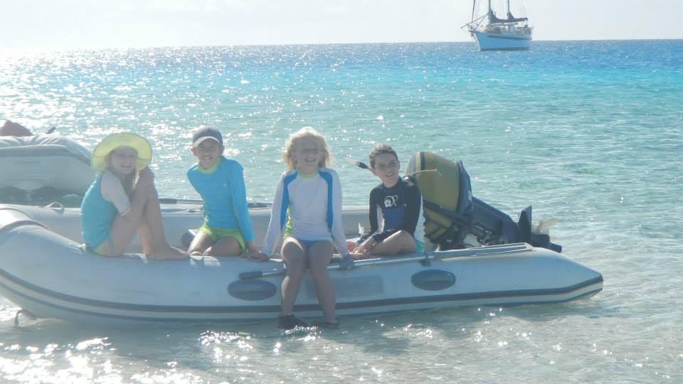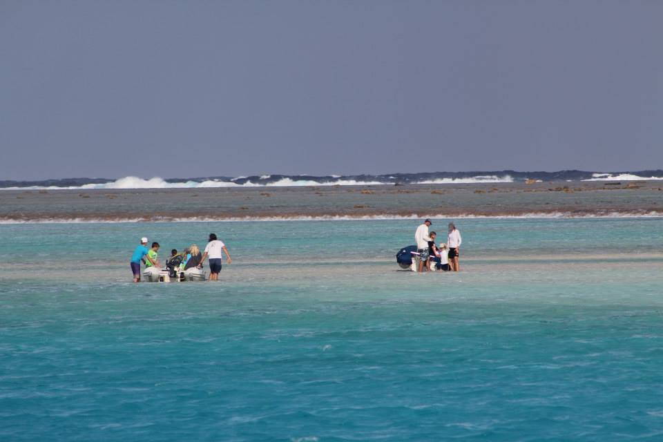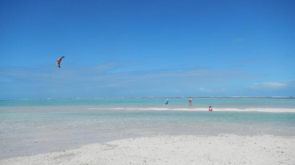 Here at North Minerva under normal conditions there is a beach that dries at low tide on the south end of the atoll, right in the vicinity of where we are anchored. However, we haven’t had normal conditions, we’ve had strong winds which push a lot more water than normal over the reef inside, and the beach isn’t quite drying out. But yesterday we had a couple of dry patches and we all headed to “shore” to enjoy some land for a change. We only had about an hour before the tide came back up, but it was a good hour. Alex had a great time, because he got to try out a kite surfer trainer. He did really well, and I feel a new hobby coming on…