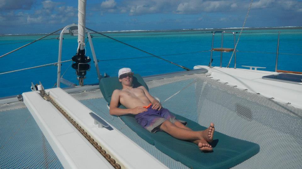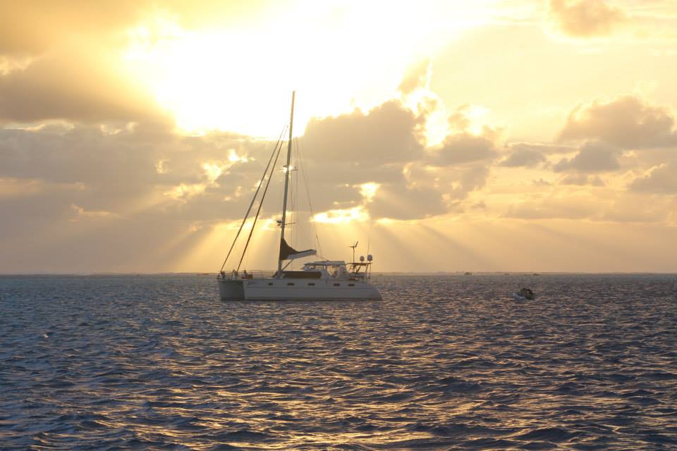 During our first stop here at North Minerva, you may recall that Brenden shot a huge Almaco Jack, they played a bit of tug o war with neither side gaining ground, and ultimately the fish got away with the spear. Tim even made a movie of it called “Brenden versus Fish” on our youtube page. Well, Brenden has talked about that fish ever since. Yesterday, he got his revenge. He speared a 16 kg Almaco Jack and fed the entire anchorage last night. He went to sleep very tired and very satisfied last night.