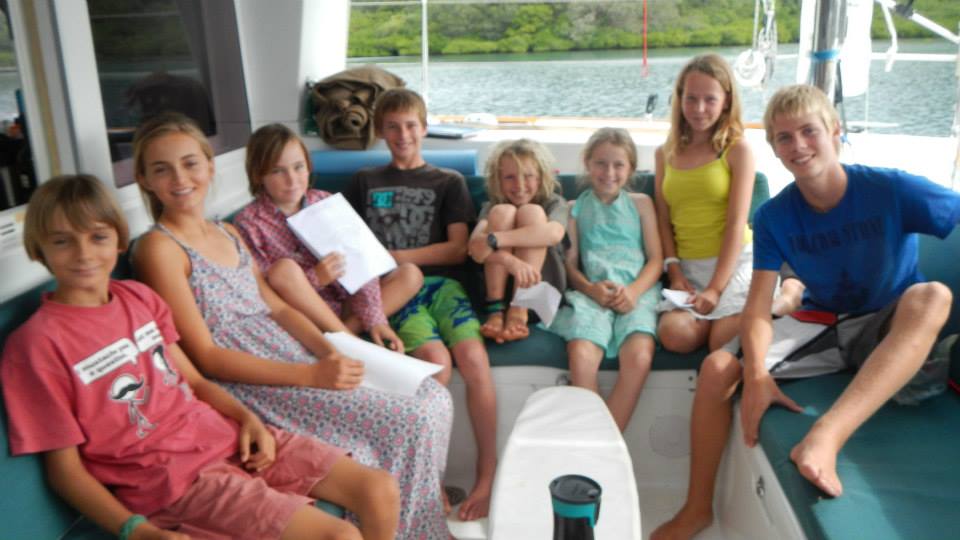 We had a very pleasant overnight downwind sail to get here, but our arrival was a bit nerve racking. We have no one to blame but ourselves, since we chose to enter the bay with poor visibility. Matuku is another volcanic island, but this time closer to The Marquesas in its life cycle, but a bit older. There IS a fringing reef but there ISN’t much of a lagoon at all. So, it’s younger than, say, Bora Bora. There is a pass in the reef into a deep protected harbor, and we got through the pass quite easily, but once we turned the corner and were staring down the bay we realized our difficulty. We could tell there was reef between us and the head of the bay, but in the poor visibility it was difficult to spot the edges. Then, a local fishing boat came out to us and guided us in. Our friends who, intentionally I might add, waited for a little better visibility had a much easier time. When the sun came out you could easily spot all the bombies. Anyway, we’ve managed to cram all four kid boats in here, and last night we had a big sushi feast on Exodus. We all met the chief yesterday as he came out to all of our boats in his fishing boat, and he invited us to all come in together for our sevusevu today, so we will be doing that around noon. The village here is small, with only 9 families, and the chief was very nice. He told us they have plenty of water so we can fill jerry cans and we are welcome to do our washing on shore. He also told us we were free to swim and fish and generally enjoy the bay yesterday, even though we hadn’t done our sevusevu yet. However, in stark contrast to how we were treated in Fulaga, I, the woman, was basically invisible. They came aboard our boat, but they didn’t introduce themselves to me and didn’t shake my hand. After I served them drinks, they thanked Tim and when they were leaving, they said good-bye to Tim. There may have been a slight nod in my direction when they mentioned doing laundry on shore, but that was it. I really only noticed it because that most certainly WASN’t the way in Fulaga. Simon, the husband in our host family, was the son of the chief, and he always addressed me, looked me in the eye, and shook my hand. Interesting.