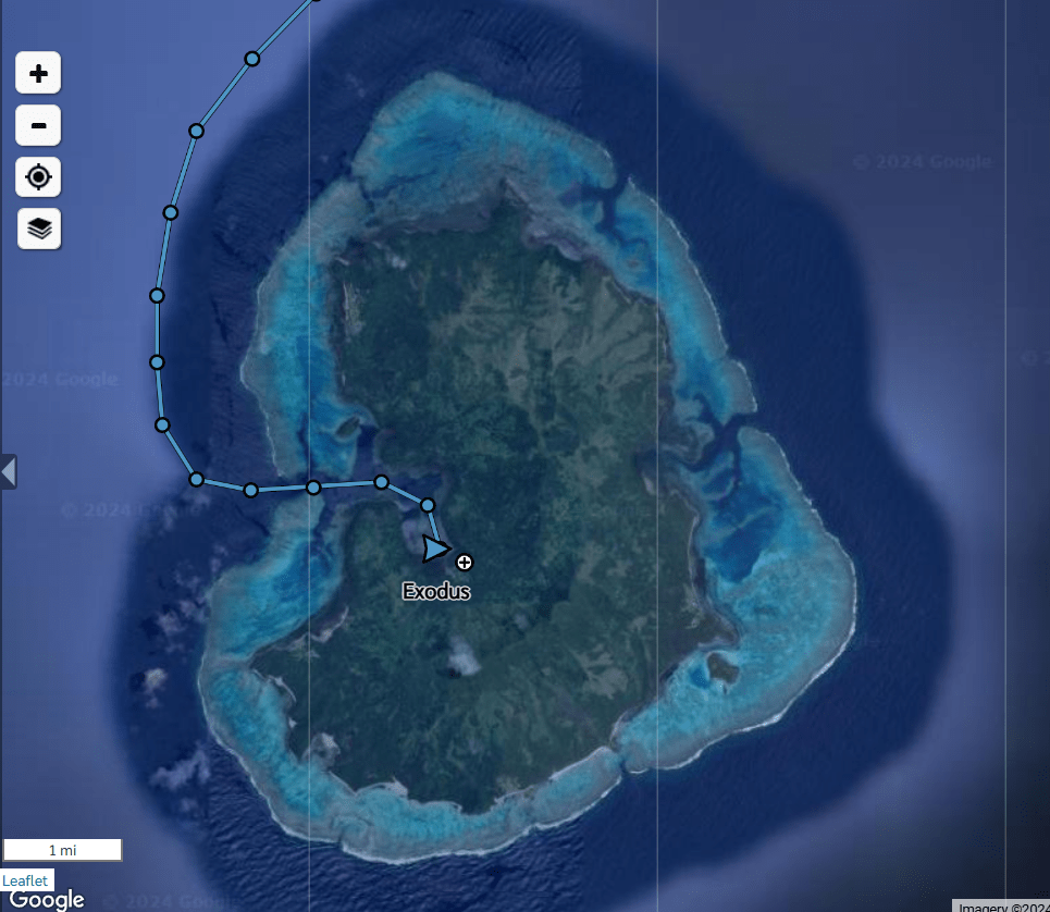 We all went back to our boats for a quiet evening that started out not so quiet. The wind picked up fiercely from the south after the frontal boundary passed, and we had variable winds with gusts up in the mid 20s. Our friends on Nautilus found themselves with their stern only a few feet from the coral behind them, and of course this happens only moments after Hans went ashore to fill water cans. So, Tim jumped in the dinghy immediately to go help, and I got on the radio to ask Fluenta or Nirvana to see if they could go catch Hans. And right at that moment Fluenta was also reanchoring, so there was excitement all around. Another boat had joined the anchorage that morning very near to us and Nautilus, so there wasn’t a whole lot of room for finding a better spot, so we also ended up also reanchoring to move forward, because we all wanted Katrien to be able to sleep that night! It turned out a win-win, because we also ended up with a little more breathing room from the coral behind us. So, just as we were all feeling settled, we realized that the fun wasn’t over for our little fleet. Just as the last light was leaving the sky, Tim looked back and saw that Nirvana had dragged and was now going to have to reanchor as well. Luckily, Fluenta wasn’t in their flight path.