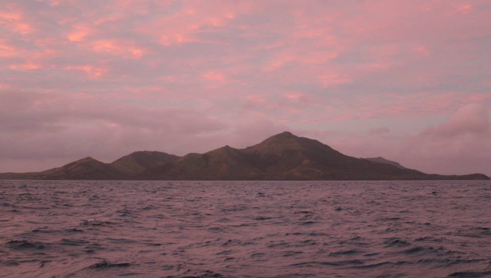 The pass at Matuku isn’t your typical pass, because Matuku isn’t actually an atoll, it’s a volcanic island with a fringing reef and not much of a lagoon at all. So, the pass we went through was a pass through the fringing reef and once through the pass you hang a right into a protected bay in the island. We were the first of the kid boat fleet to approach the pass. It was wide, and as you’d expect given the description above, there wasn’t any current to be concerned about, and after poking our nose in to have a look, we decided to go for it. Getting through the pass was the easy part. The tricky part was navigating the coral filled bay in order to get to the anchorage. Since we went in so early our visibility was poor and the navionics chart was basically useless. We could see that there was reef between us and the head of the bay, but it was very difficult to spot the edges, and at one point we had to stop the boat pretty abruptly. Then, a local fishing boat came out to us and cheerfully guided us in. Nirvana came in next and was also guided by the fishing boat, and by the time Fluenta came in the sun was higher and the visibility much better.