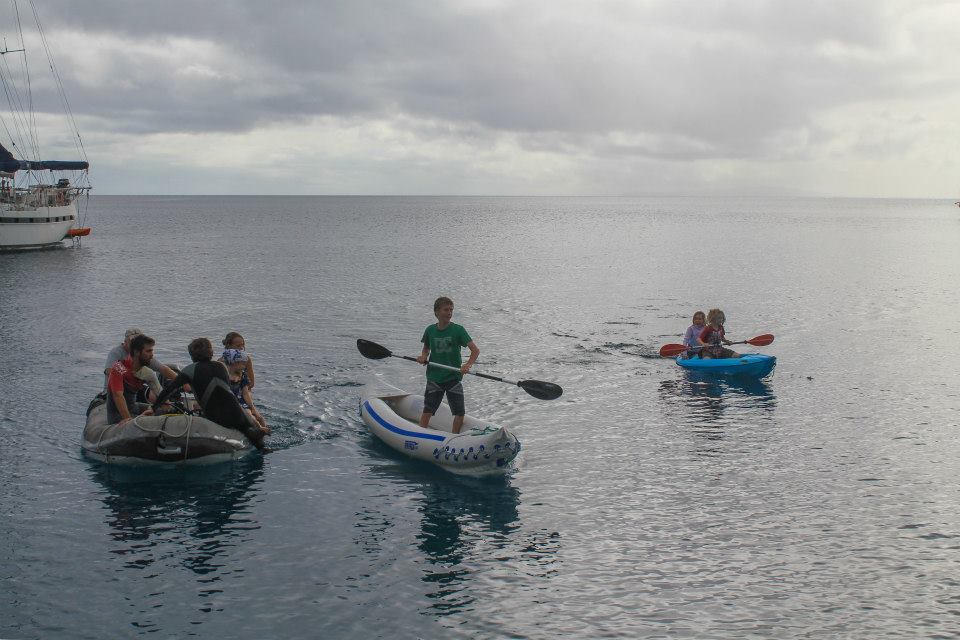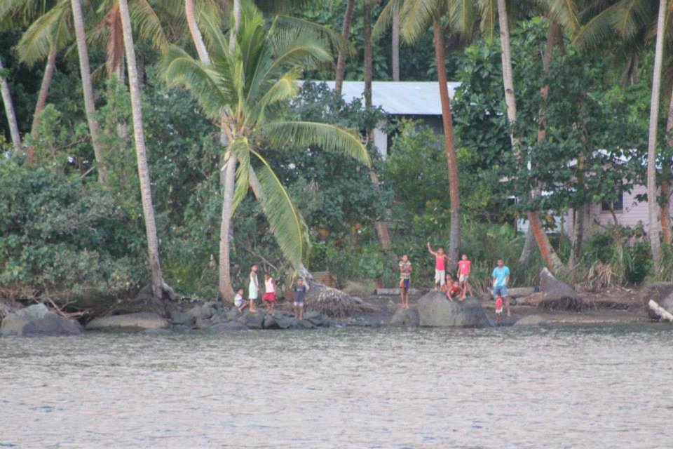 We had a quick overnight passage from Suva to the island of Gau night before last. Our friends from home (“The Bellinis,” a family of five) joined us in Suva, and for some reason after the passage and then yesterday after walking an hour in the rain to the village to do sevusevu, and then after having to carry dingies over the coral and rocks because the tide had receded so much, they still seem like they’re having fun. They are getting the real deal with their cruising experience, that’s for sure. The weather has been crappy, but hopefully since they are with us for about 2 weeks they will get to see some sunshine. As usual, the people of the village were very nice, and after the sevusevu they served up the kava immediately. When we told them we wouldn’t be able to stay long because we wanted to walk back before dark we thought that would mean there would be no kava drinking, but no it just meant they hustled to get it ready and then were very understanding when we left after just one bowl. We are here with two other kid boats (Caminante and Fluenta) and there is a nice long beach here, so I’m sure there will be some on shore activities!