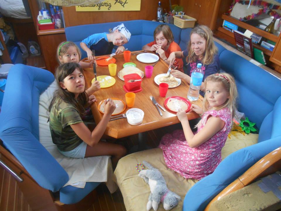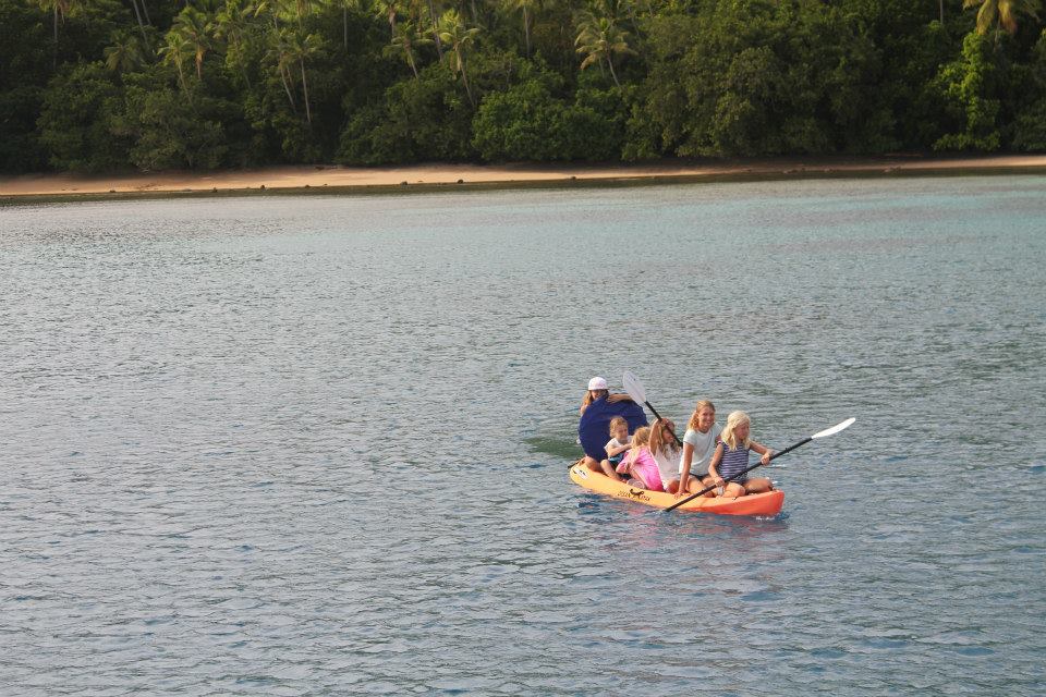 We are still having a great time in Gau, except that the weather has been pretty crappy. Yesterday, we went for a hike in the rain and mud, but most people still had a great time, and some of the kids took advantage of the conditions to get really good and dirty. Today, we’ve been lucky enough to have some sunshine and our friends who are visiting were finally able to do some snorkeling. The kids from all the boats are currently on shore setting up basecamp version 2.0, and they are making plans for a big campout tonight, no grownups allowed. I am starting to get a bit sad, because this kid boat flotilla will soon be breaking up, and I enjoy the company of all the other moms and dads just about as much as the kids all enjoy being together, but we will continue to enjoy it while it lasts.