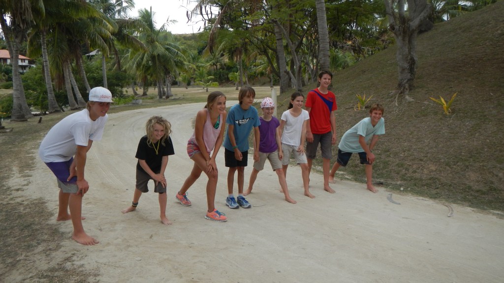 During our second stop at Musket Cove, we were there with Fluenta, Nirvana, and a new kid boat called Honey. Julie from Nirvana had the California physical fitness standards, so we arranged a day for all the kids to participate in testing themselves against the standards. They were amazing! They ran a mile, did push ups, sit ups, and a few other things. Bottom line is that even without regular sports participation they are all well above the “healthy” threshold, and Brenden and Gigi (12 year old girl from Nirvana, she and Brenden were actually born on the same day) actually scored presidential level in all categories.