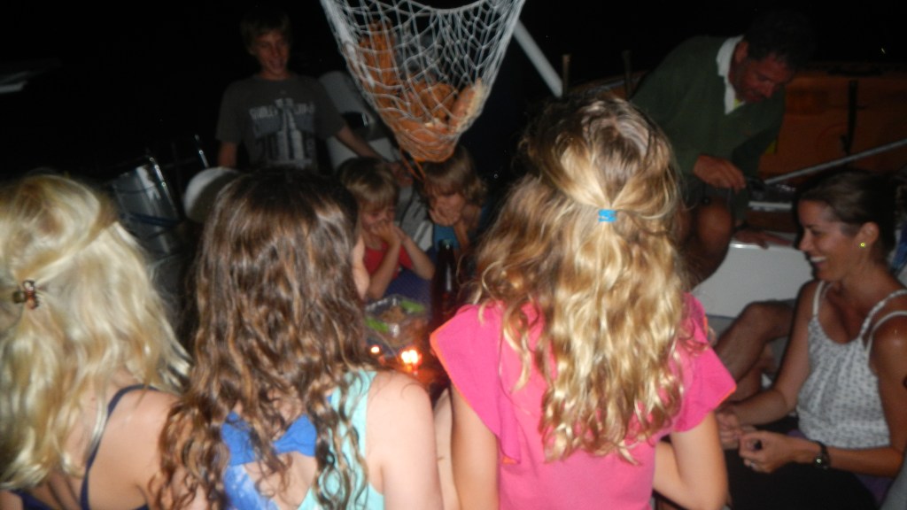We caught up with three other kid boats and had a great time anchored near Manta Ray Resort.