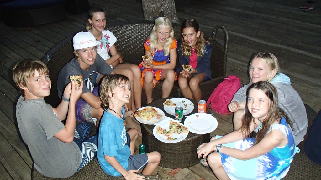 The resort is low key, nothing big like Port Denareau or Musket Cove. Our first evening there we took advantage of the restaurant and had a relaxing pizza dinner on shore. We ordered a couple pizzas at a time and just kept them coming until we’d had enough. Alex and Brenden were enjoying being back with their kid boat posse, and I was enjoying being back with some of my sailing sisters.
