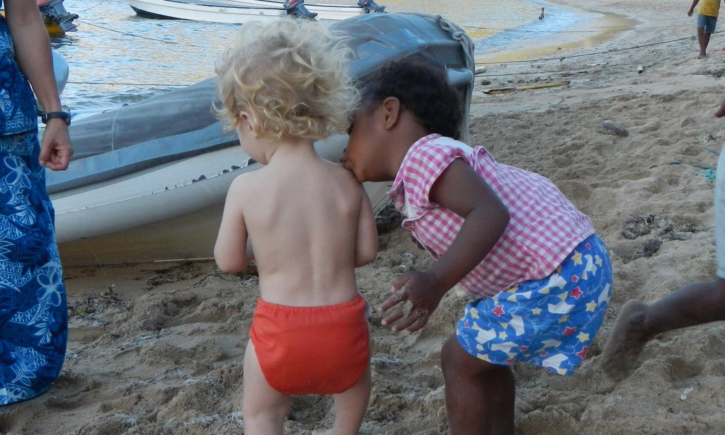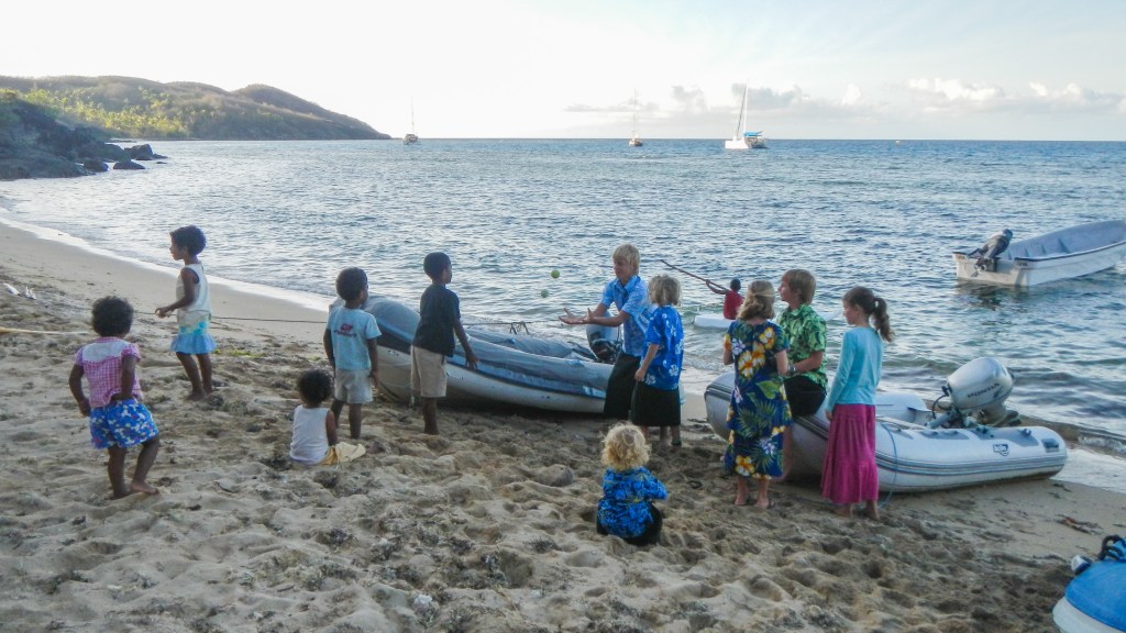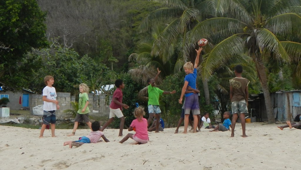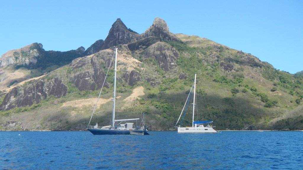 Waya is the southern most island in the Yasawas, and we chose to anchor in the large bay on the northern side off of the village of Nalauwaki. This was far from our best village experience… with a resort nearby its easy to understand why the people of the village don’t see us as potential friends but as sources of money. Anyway, Fijian children are fun wherever you go, and it’s aways fun to buddy boat with other kid boats.