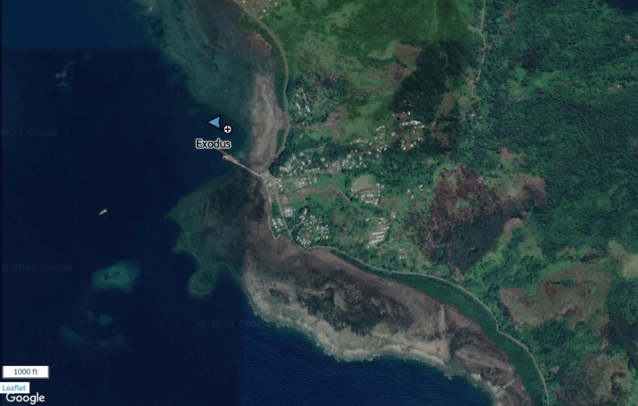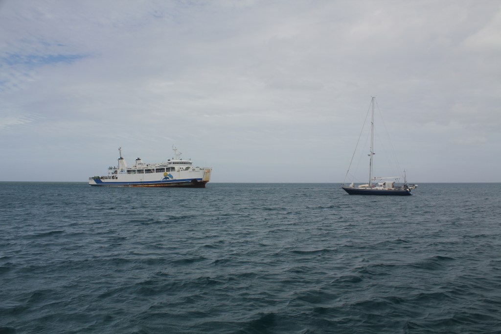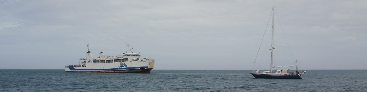 At Coconut Point there is a ferry terminal for traffic between the two big islands in Fiji: Vanua Levu and Viti Levu. There was a small town there also, but we never did go ashore and explore, even though we talked about it several times. The kids stayed entertained one day by stringing lines in the water between Exodus and Fluenta and swimming back and forth. No, it was not a double halyard rope swing or anything, but they had quite a bit of fun with it.