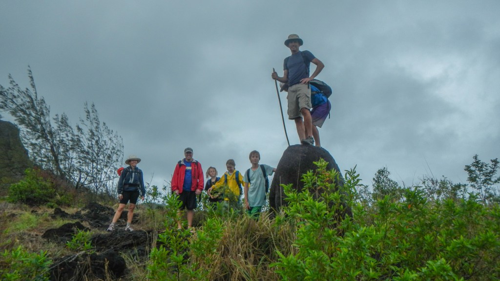 We had read that it’s possible to hike from Cucuvou across the island over to the village, and so we decided to give it a go. The fact that we had no idea where the trail was and that it was a gray drizzly day wasn’t stopping us. It turned out to be quite a long hike, three hours in all, but I’m pretty sure we weren’t breaking any speed records. Other than the dampness, it was an enjoyable hike, mostly along a ridge with views of the different bays around the island.
