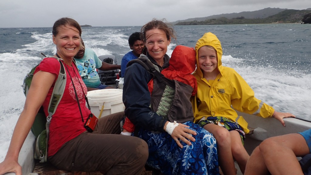 The people of the village were pleasant and they appreciated our effort to come all that way to present Sevusevu. The chief wasn’t there, so we presented our Yaqona to his son. We ended up getting a ride back to our anchorage in one of their small fiberglass fishing boats. Quite a ride, and it sure beat another 3 hour hike back.