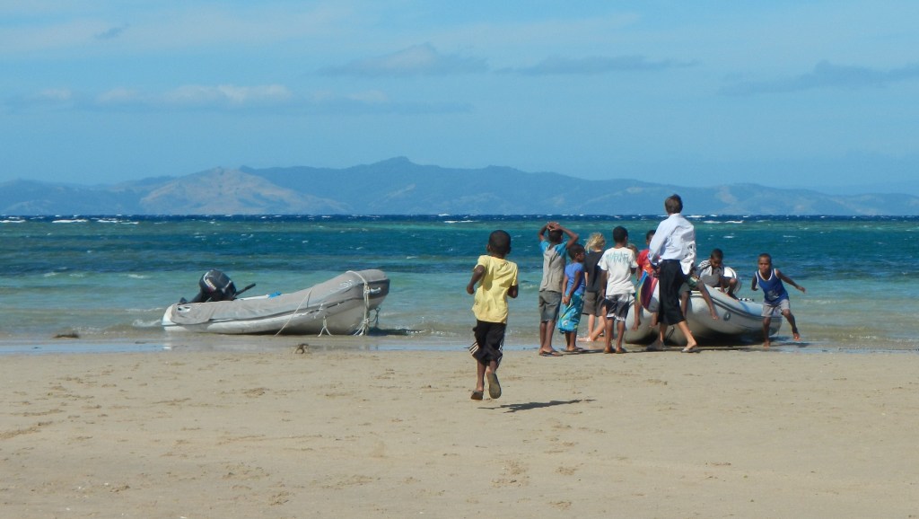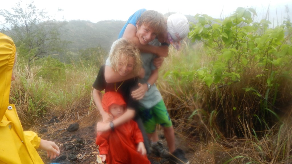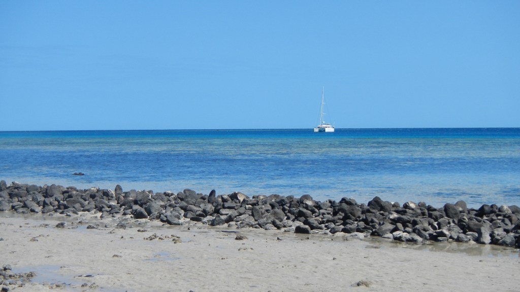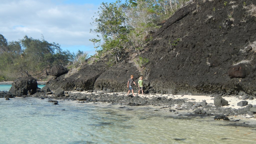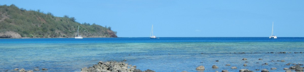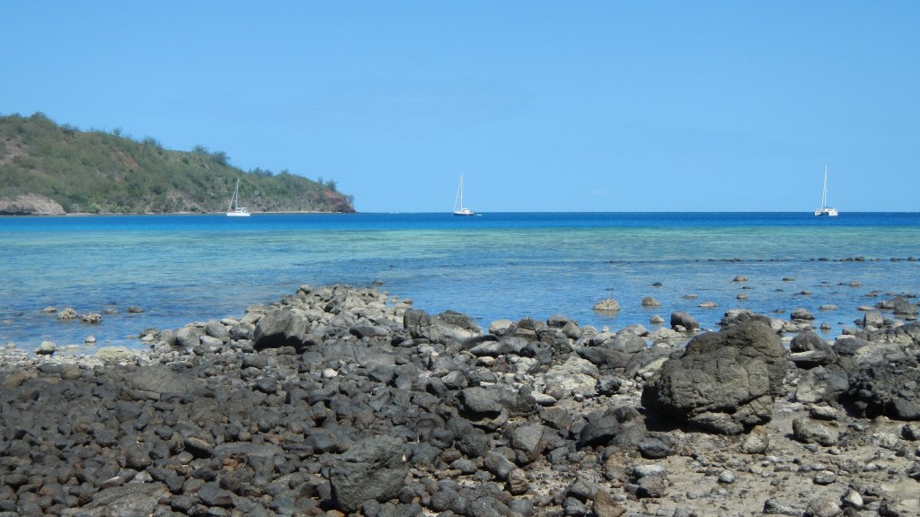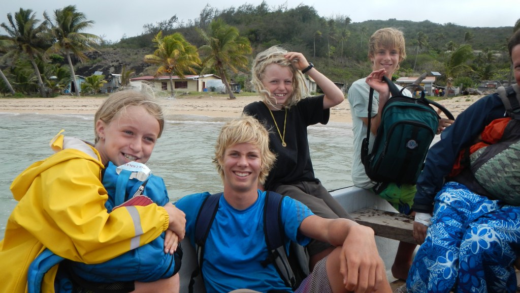We had a nice time hopping north up the Yasawas, but last night when we pulled into Cucuvou Bay on the island of Yadua we had that cruisers bliss feeling that we were missing in the resort laden, high traffic area of Yasawas. There’s only one village on the entire island and it’s on the other side from where we are now. So, the bay we entered is completely missing any evidence of human activity and it’s absolutely gorgeous and peaceful. Tim and I sat in the cockpit having safe arrival drinks and felt like we needed to whisper it was so quiet. We have had to say a couple more sad good-byes, and at the moment our kidboat convoy is down to two — just us and Fluenta. So, even though we are in this much more remote location, we still have friends around us.