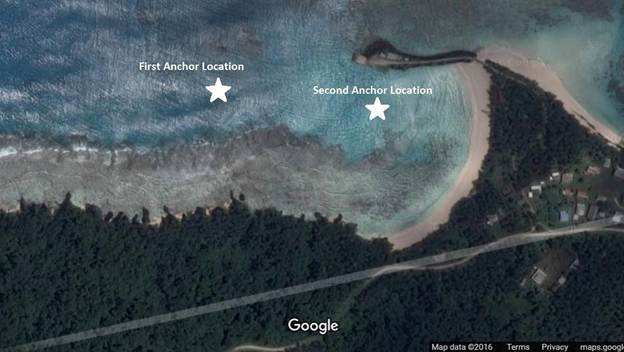 When we arrived (with very little light), there was one boat anchored outside of the main wharf area (s/v Navire), and one boat anchored inside the wharf area almost on the beach (s/v Menkar). We ventured inside and were promptly visited by a couple guys in a dinghy warning us that the groundswell from the north was causing breaking waves on the beach in the little harbor and it wasn’t that safe to be anchored in there. What about the boat already there? It turns out they have a retractable keel and they were able to tuck way up into the shallows behind the wharf, which was an area less affected by the swell. With not much daylight to work with we decided to just go anchor out and reassess in the morning. It was a bit rolly out there, but certainly not as rolly as being on passage, so we still all got a good night sleep. After two days the swell had subsided and we safely moved Exodus inside the little harbor.