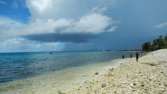 Funafuti is an atoll, but in contrast to others we’ve been to, it’s much older, further on in it’s life cycle. The lagoon is deep and there are very few, if any, coral heads in it. The motus are very low lying, and overall, it’s not exactly the most picturesque place we’ve been. Apparently the atolls of Tuvalu could be the first victims of higher ocean levels due to climate change. What I read with the boys the other day said by the end of the century these islands could be underwater.