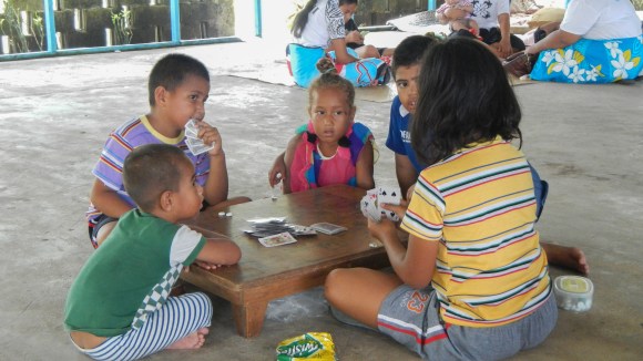 Yesterday was a lovely day until about 5 pm. We were invited to a picnic here with the people from the island of Kioa. Kioa is in Fiji, but it is not inhabited by Fijians. 67 years ago, a small community from the island of Vaitupu in Tuvalu purchased the island of Kioa and migrated there. Now, there are many people who migrate back here to Funafuti, either permanently or temporarily, and they make up one of the small subcommunities within Funafuti. They even elect a community leader, and they have many social gatherings, like this picnic yesterday. Why were we invited? Call it being in the right place at the right time. When we were in Rotuma we met another boat called Navire with a very nice couple from New Zealand. Well, they had a passenger with them, called Kailopa, and they were giving him a ride from Kioa to Funafuti so he could visit family. Kailopa is wonderful man, and we enjoyed getting to know him a bit in Rotuma, and now that we are in Funafuti he is including us in all the festivities. Also, he has a grandson who is 17 years old named Joseph, and Joseph is being very good to Alex and Brenden, and he’s even been out to Exodus for some dinghy surfing!