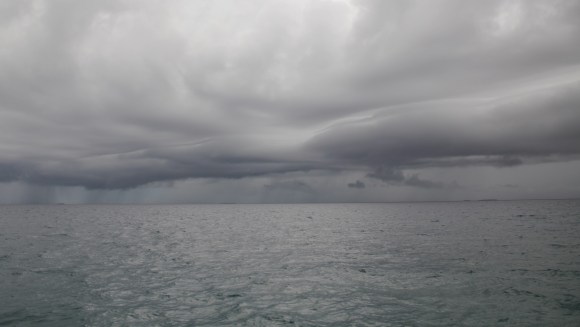 It turns out that the storm that hammered us the other day was the axis of a trough passing over us from the north. This is somewhat comforting news, in that it was forecast, if I had just been watching the right weather products. We had another trough go over yesterday evening, and because I had been watching I knew approximately when the rainy, squally weather would start, and I knew approximately when the axis would pass over. Thank you NWS-Honolulu. This one wasn’t as bad, we saw 20 kt for about 30 minutes at the most. And of course we were anchored in a better spot with enough scope out, since we knew it was coming.