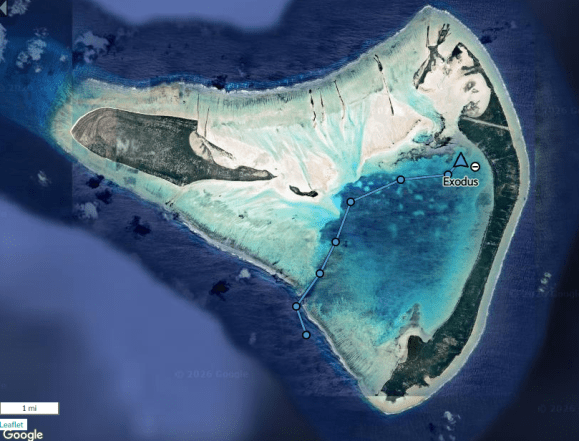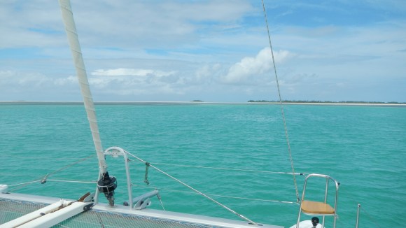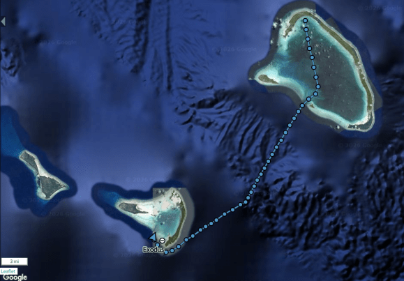 - Passage to Aranuka. Decided to wait until morning for high tide to go through the pass