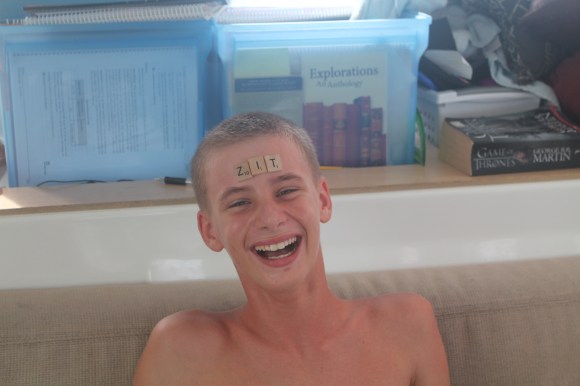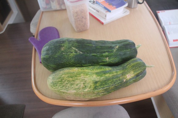 At the end of the party the hostess presented as a gift to us one of the woven mats, and I couldn’t contain my gratitude/excitement because I’ve always really been wanting one. I told the boys when we get home, we aren’t going to have furniture, just a big hand-woven mat in the living room, but Tim has vetoed that. I think he misses the big comfy couch. The hostess also gave us two huge pumpkins, and Tim never tired of the joke “Oh my gourd, what are you going to do with those?!” The pumpkins were almost as exciting as the mats given, we have absolutely no fresh food on board. Oh, and when you think pumpkin, don’t think big round thick skinned pumpkin that you carve at halloween, think something more like a giant zuchinni. You can even eat the skin.