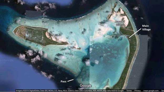 A first for us…we went to Anranuka and entered the lagoon without ANY prior cruiser intel… no tracks, no waypoints, no depth/current information… nothing. We didn’t even have nautical charts… the island of Aranuka, must not have been important during WWII because unlike Tarawa and Abemama it’s completely uncharted. All we had was a somewhat cloudy satellite image and the fact the someone once heard from someone in Majuro that you could get a boat in there. From the Soggy Paws Compendium about Aranuka: “We didn’t stop here, but I was told in Majuro that you could get inside the Arunka Lagoon. Google Earth seems to support this. If you try this, you’ll be a pioneer!”