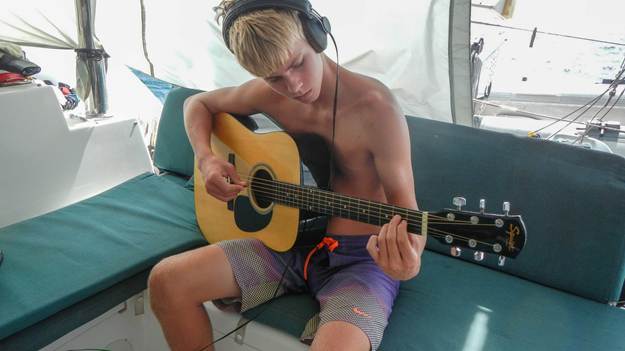 After that, he was hooked. He looked up other songs he likes and pretty soon he was playing Hey There Delilah (Plain White T’s), Time of Your Life (Green Day), and basically everything by Passenger. It was awesome to see him so committed and passionate about something. So, now when Tim and Brenden are gone for hours spearfishing Alex picks up his guitar and applies himself to learning something new. He’s always loved music, and so it’s especially fun for him to play the songs he likes. And this may come as a surprise to some (but others know all too well) that I love singing along!