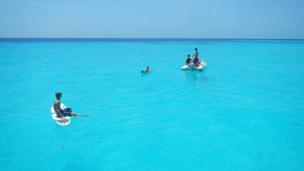 At little dinghy surfing at Bigej (No, this photo has not been enhanced. The water really was that blue!)
