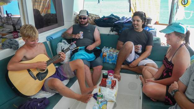 In an effort to pay back some of the hospitality we had been receiving, we invited Todd and Meagan and the kids and some of their friends out for a day trip on Exodus. We piled on board in the early morning, and with no wind we motored up to Bigej island. Before leaving I filed a float plan with the marina, which was a requirement for safety reasons. Kind of funny to be back in the nanny state after all the remote cruising we had done in so many countries up to that point.