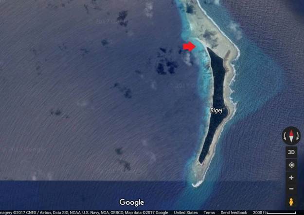 Bigej Island (Red arrow = approximate anchor location)