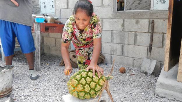 Learning how to eat Pandanas Fruit at Enejalar