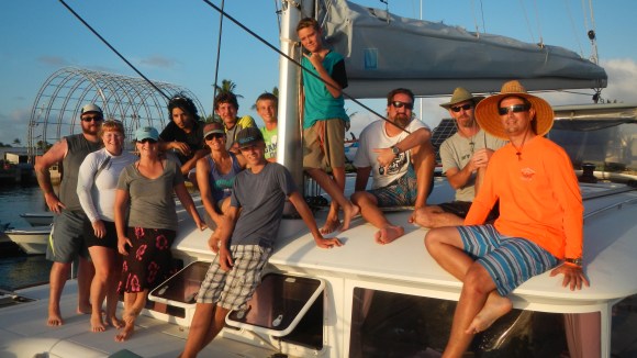 We left Ailuk yesterday morning loaded up with Marshallese handicrafts. I think I mentioned before that they have a shortage of rice and flour on the island, and since we decided to come straight to Kwajalein (where there is ample provisions) we decided to leave all of our remaining rice/flour with them. Unlike some places we’ve been, though, they aren’t particularly interested in hand outs and they gave us more baskets and wall hangings, so that it’s a “fair trade.” It’s really crime how long they’ve gone there without a government supply boat. The Marshall Islands gets so much money from the U.S. and people on the outer islands don’t have food?