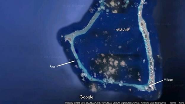 We entered Ailuk through the SW pass which meant sun in our faces and wind on our nose as we crossed over to the village