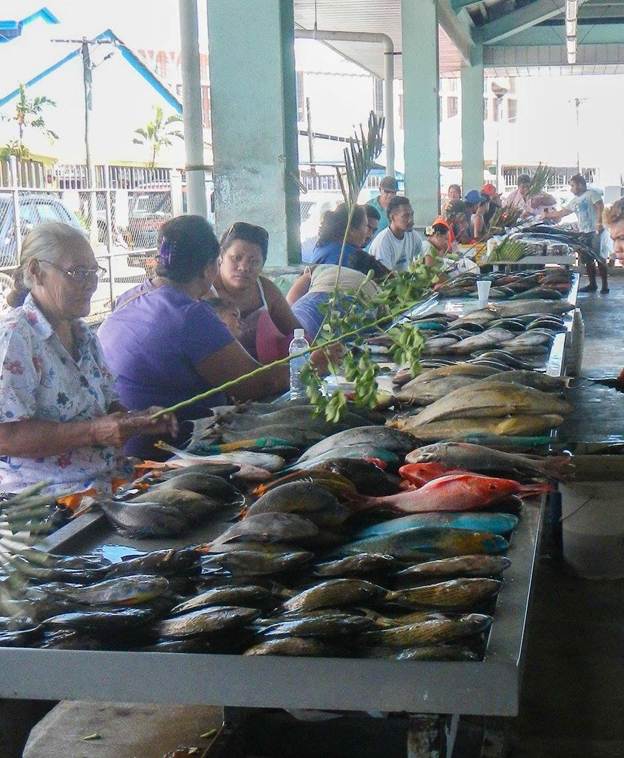 The marina is on the opposite side of the harbor from the downtown area, and it was a good mile walk around the edge. Usually when running errands, I would walk down there and then take a taxi back, especially if I was loaded down with provisions. Taxis were plentiful and reasonably cheap, although there was a standard fare and you had to be careful not to get overcharged by making sure you had an agreed to price before taking the ride. Provisioning was excellent. Here are my notes from the small notebook I carried about with me: “Red mall (Chan Mow) – good cheese, coffee beans. Frankie – tortillas, roti, old-fashioned oats, chocolate. Lucky Foodtown – best meat and produce. Farmer Joe – Capt morgan, good wine selection.” It was rare to be in a place where there was a single store that met all your needs, and Samoa was no different. There was also a fish market near the water and a huge open-air market for fresh produce in and handicrafts in the middle of town. I bought the boys their own woven fans here, because they kept taking mine that I bought in Tarawa. There was a hardware store, a library, and even a movie theater where Tim took the boys to see Allegiant one evening. A real treat was not having to handwash all the clothes! There was a laundry place within walking distance of the marina, a little far to carry a bunch of bags, but I would usually take one of my big strong pack mules with me.