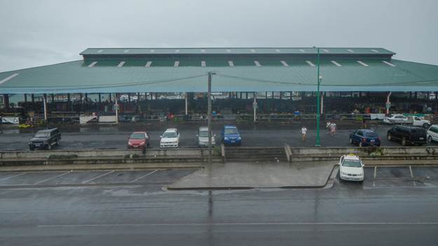 A shot of the open air market in the rain