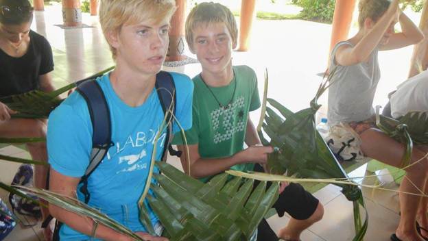 The boys were so happy to be there! They taught us how to make the plates out of palm fronds, but of course we knew how to do that already. Brenden told me, “Victoria taught me that a long time ago…”