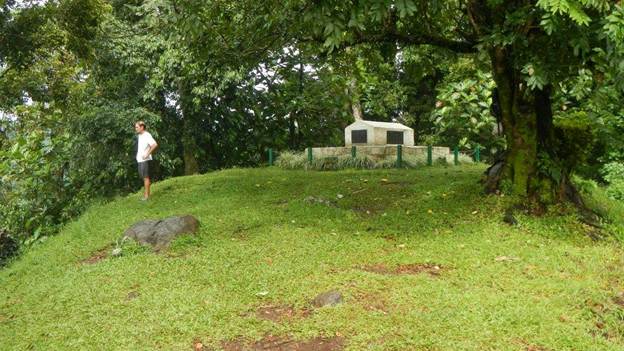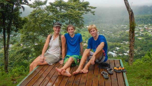 A few days after our tour we took a taxi back up to Villa Vailima in order to hike up to RLS’s grave. It wasn’t a long hike, but it was basically straight up, and because of all the rain it was muddy and slippery. That didn’t slow down Brenden, though. He made it to the top in 10 minutes. Barefoot. I brought up the rear, and it took me 25 minutes. In my running shoes. At the bottom of the trail is a waterfall and swimming hole, so we all had a chance to cool off for a while.