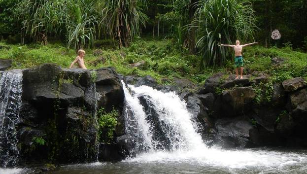 Playing in the swimming hole at Villa Vailima