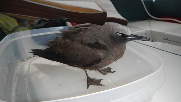 For the rest of the passage, the days all blend together. The wind steadily increased until we were running with a nominal 25 kts of wind on the stern and seeing more and more frequent squalls up in the mid to high 30s. Skies were consistently gray, and sadly Exodus became somewhat of a hospice care facility for small birds that must have been blown off course. Five total made their way to rest on Exodus, 3 died on board and 2 flew away after being startled (fate unknown). Tim would try to nurse them back to health, trying to get them to eat and drink, but I think by the time they got to us they were already spent. Needless to say, I was not the one who had to clean up all the poop. That was Brenden’s job.