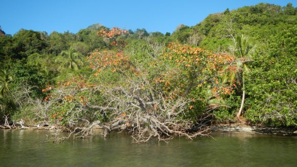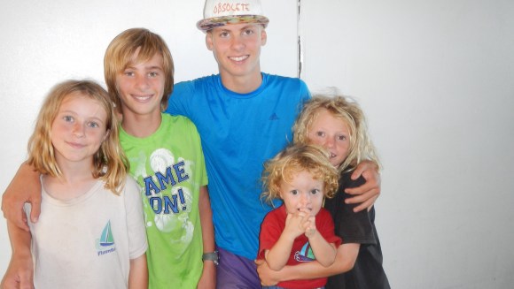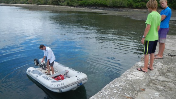 Most of the boats in the fleet here (we are 9 total now!) have moved down to anchor in the southern end of the lagoon to get away from the “big city” for a couple days. We’ve met a lovely couple from Sweden who cruised with their 3 boys when they were younger, and they organized a bonfire on the beach yesterday. They were going in to get the fire started, and they radioed to see if the boys would like to come help. I thought it was a very nice gesture, and I all of a sudden realized how important it is for the boys to have time with people without Tim and I around, so they can forge their own relationships. No, it’s not other kids, but there’s no reason they can’t get to know the adults too. Alex was happy to take his machete and get coconuts for everyone. After about 45 minutes they came back to get Tim to join the party too, while I stayed on board to enjoy the boat to myself. In case you were wondering, yes, I did walk around naked in the rain. Just because I could.